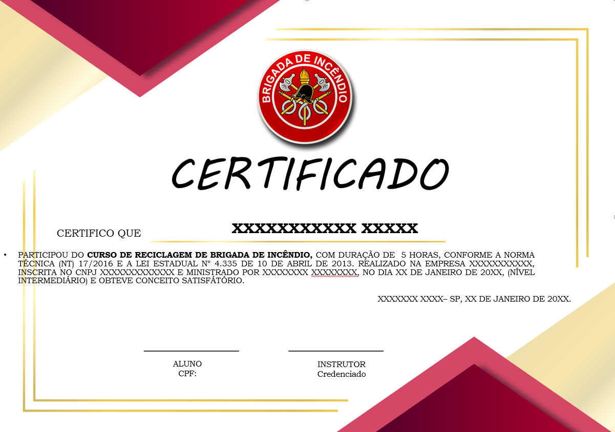 Certificados com design moderno e conteúdo programático completo de todas as NRs.